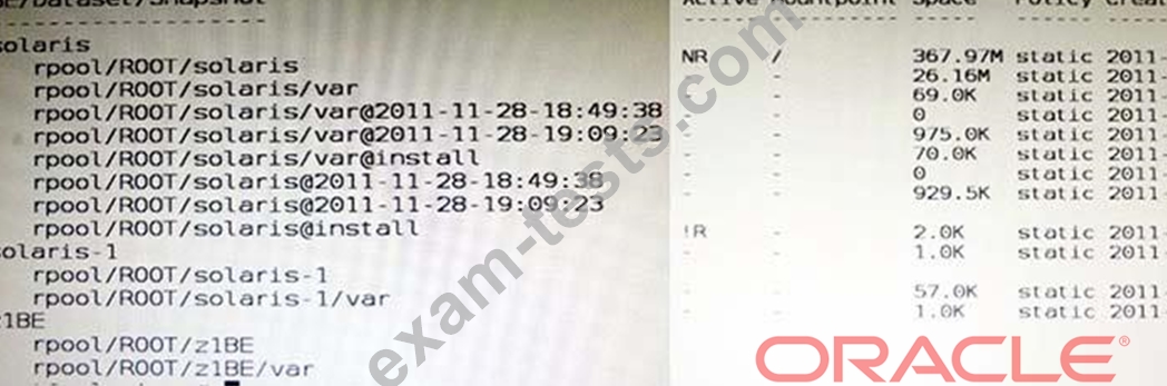 View the Exhibit to inspect the boot environment Information displayed within a non global zone on your system.