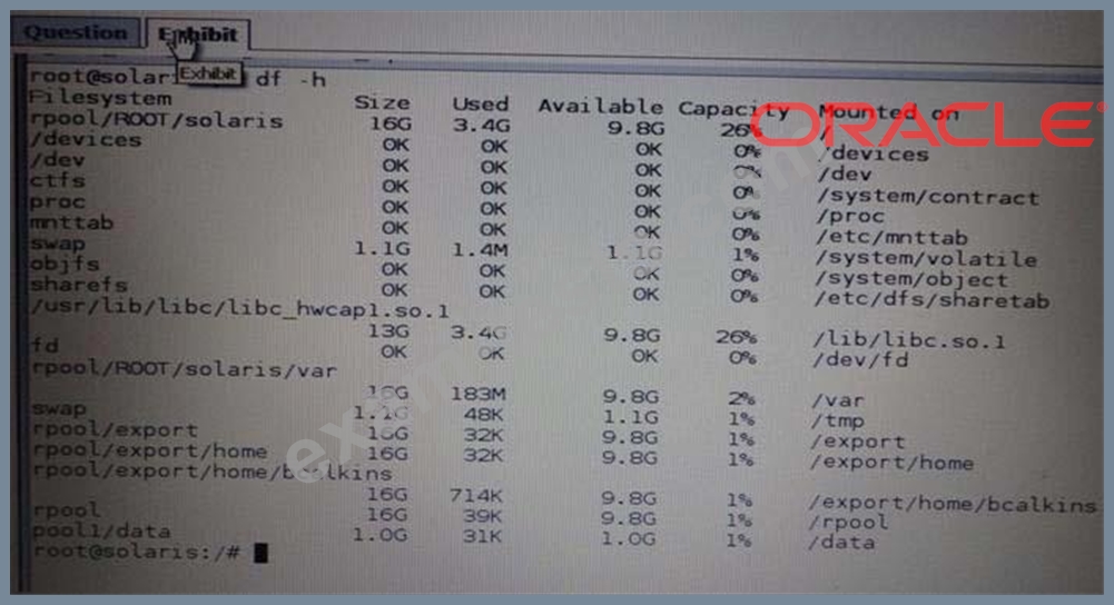 View the Exhibit and review the file system information displayed from a remote server.