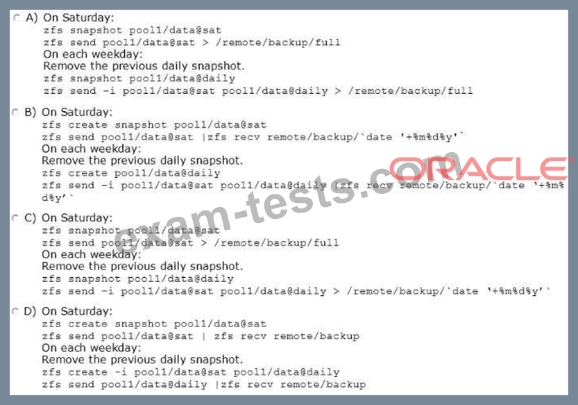 On Sunday through Friday, you are to perform a differential backup to the same remote system disk:
