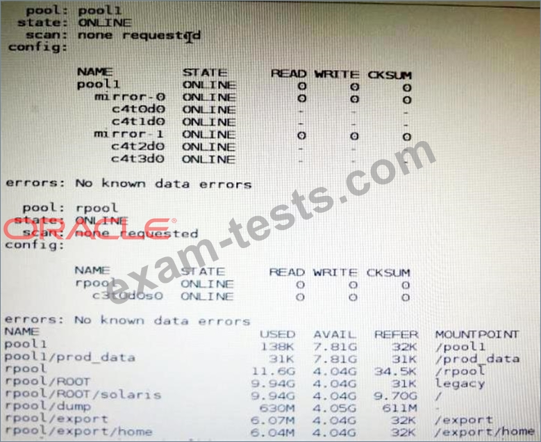 View the Exhibit and review the zpool and ZFS configuration information from your system.