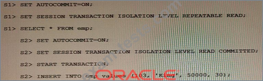 Examine these commands which execute successfully in the sequence shown in Sessions S1 and S2:
