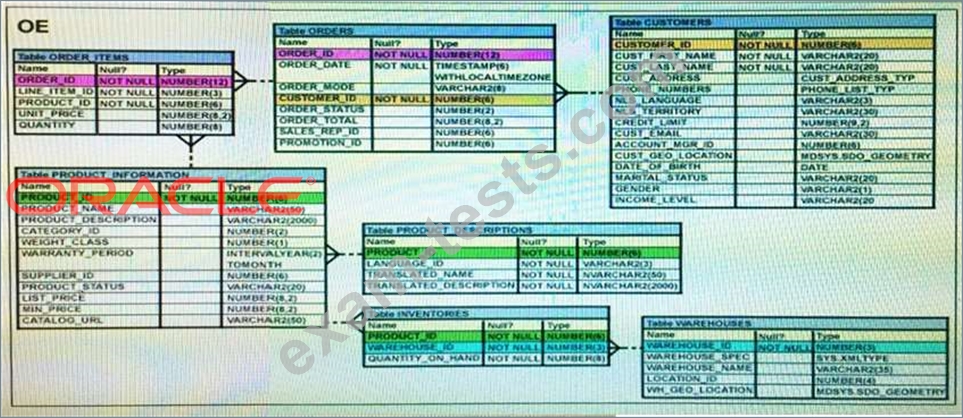 View the exhibit and examine the structure in ORDERS and ORDER_ITEMS tables.