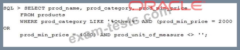 You must display product names from the PRODUCTS table that belong to the 'Software/other' category with minimum prices as either $2000 or $4000 and with no unit of measure.