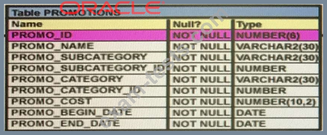 View the exhibit and examine the structure of the PROMOTIONS table.