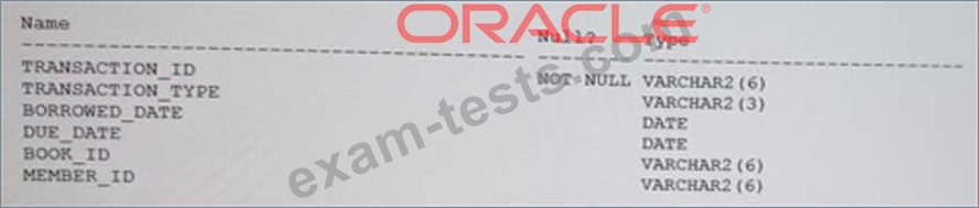 Examine the structure of the BOOKS_ TRANSACTIONS table: