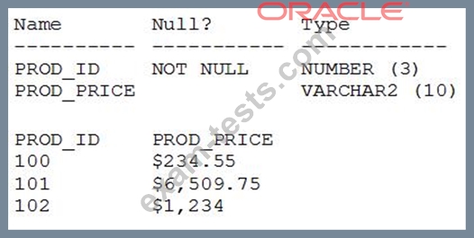 View the Exhibit and examine the structure of the PRODUCT_INFORMATION table. (Choose the best answer.)