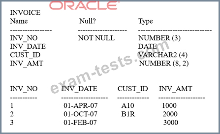 View the exhibit and examine the structure and data in the invoice table. (Choose two.)