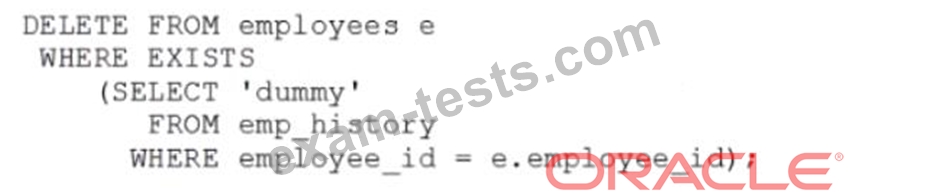 Table EMPLOYEES contains columns including EMPLOYEE_ID, JOB_ID and SALARY.