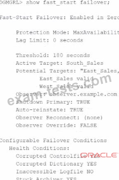 Your Data Guard environment contains a primary database and three standby databases with these attributes: