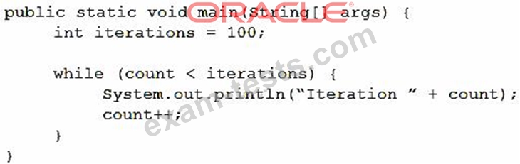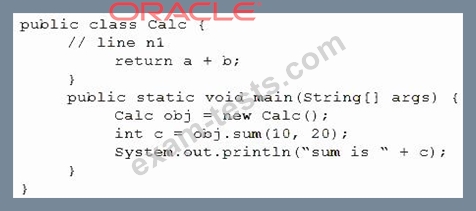 Which code fragment, when inserted at line n1, enables the code to print sum is 30?