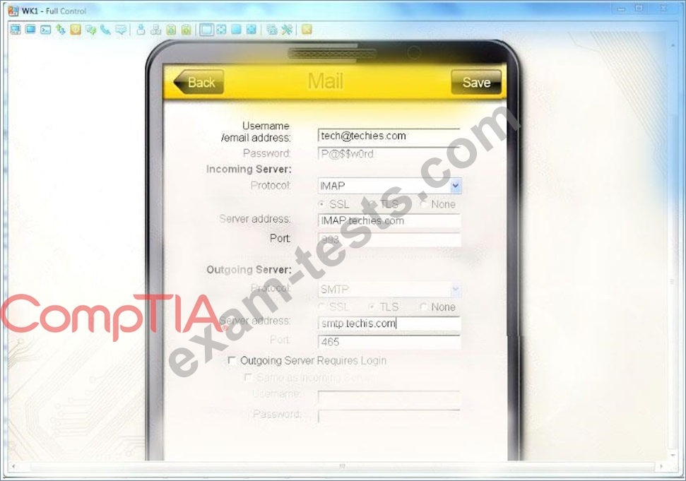 The company's WLAN is broadcasting across the company for easier access. Both incoming and outgoing servers require login credentials.