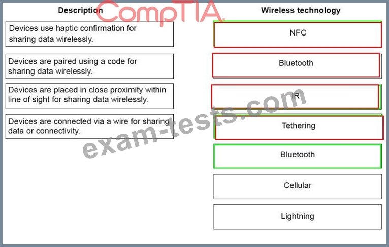 Drag each mobile technology to the description of its use. Some answers will not be used.