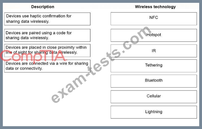 Drag each mobile technology to the description of its use. Some answers will not be used.