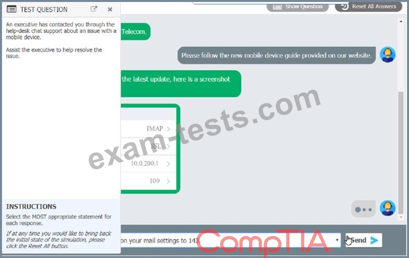 An executive has contacted you through the help-desk chat support about an issue with a mobile device.