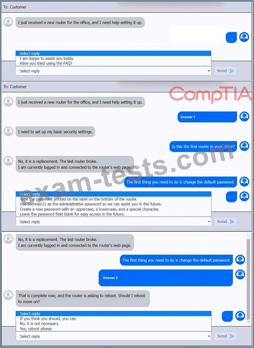 You have been contacted through the help desk chat application. A user is setting up a replacement SOHO router. Assist the user with setting up the router.