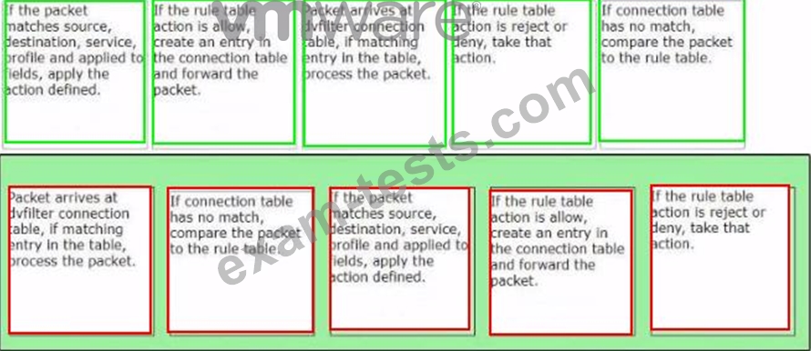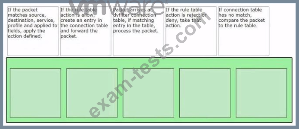Sort the rule processing steps of the Distributed Firewall. Order responses from left to right.
