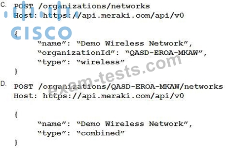 Which HTTP request is valid to create a new wireless network called "Demo Wireless Network" in the organization "QASD-EROA-MKAW"?