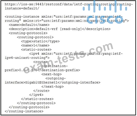 Refer to the exhibit. A RESTCONF GET request is sent to a Cisco IOS XE device. The base URL of the request and the response in XML format are shown in the exhibit. What is the YANG data node that is referenced in the response?