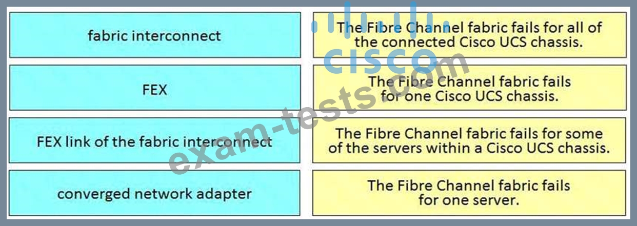 Drag and drop the components from the left onto the descriptions on the right that indicate what occurs to Fibre Channel fabric when that component fails.