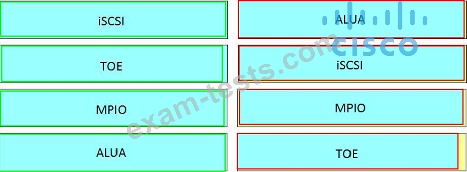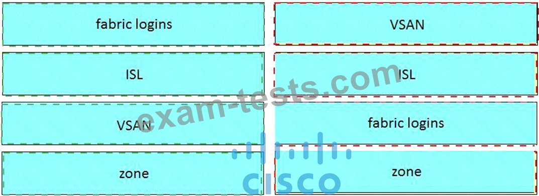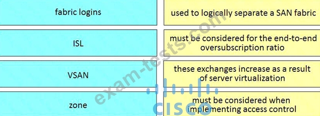 Drag and drop the SAN components from the left onto the correct design considerations on the right.