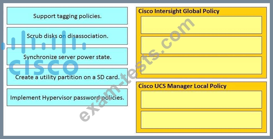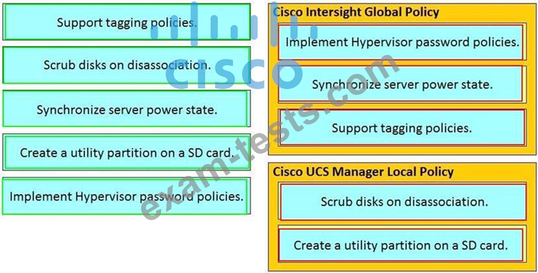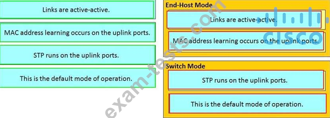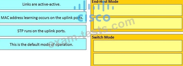 Drag and drop the feature descriptions from the left onto the correct UCS Fabric Interconnect modes on the right.