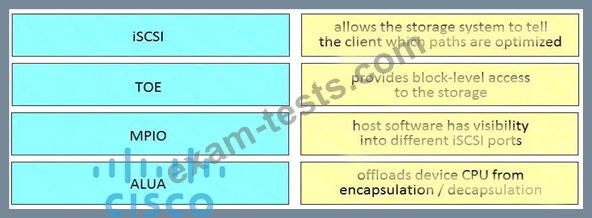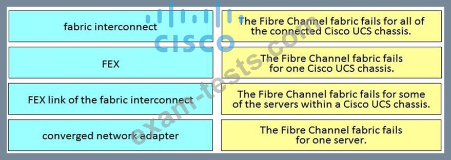 Drag and drop the components from the left onto the descriptions on the right that indicate what occurs to Fibre Channel fabric when that component fails.