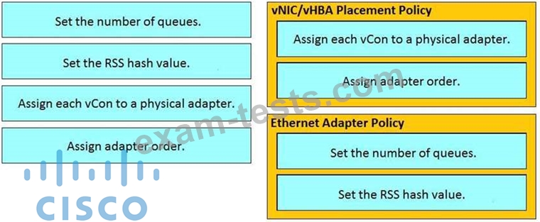 Drag and drop the configurations from the left onto the correct policies on the right.