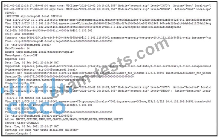 Refer to the exhibit. An engineer is deploying mobile and remote access in an environment that already had functioning Business to Business calling. Mobile and remote access SIP registrations are failing.