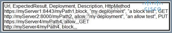 Refer to the exhibit. A manager asks an engineer to create a CSV file for the HTTP allow list on the Expressway deployment. The engineer wrote the script shown and uploaded it to the Expressway, but it is not being accepted. Which action resolves the issue?