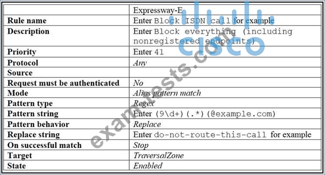 Refer to the exhibit. An ISDN gateway is registered to Expressway-C with a prefix of 9 and/or it has a neighbor zone specified that routes calls starting with a 9.