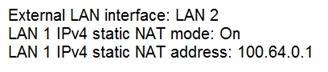 Refer to the exhibit. The firewall has been configured from NAT 192.168.108.2 to 100.64.0.1.