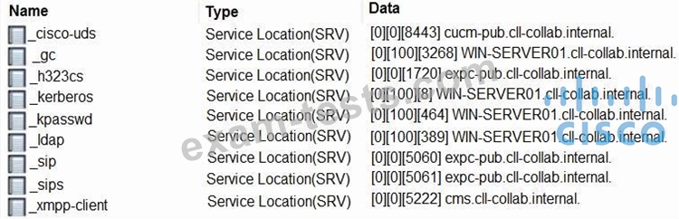 Refer to the exhibit. When a user tries to sign in to the Cisco Jabber client through Mobile and Remote Access, they receive this error message: "Cannot communicate with the server." The external DNS server is configured with the SRV records listed in the exhibit.