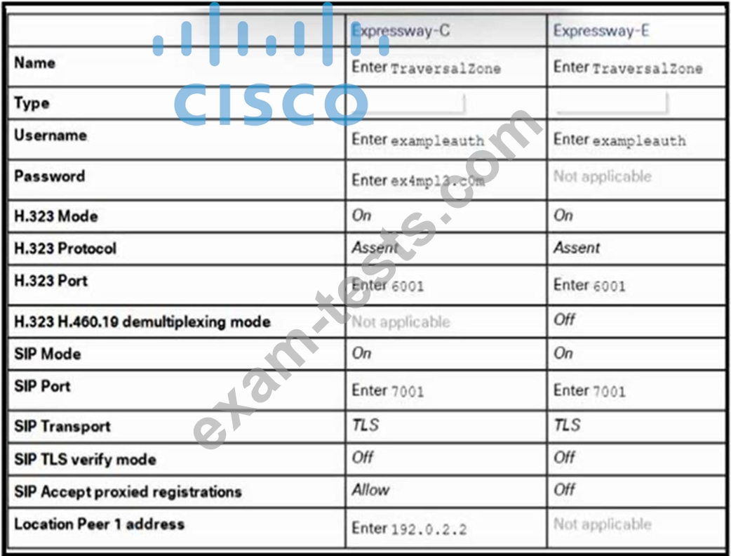 Refer to the exhibit. What are "Type" field values for this Expressway servers zone configuration?
