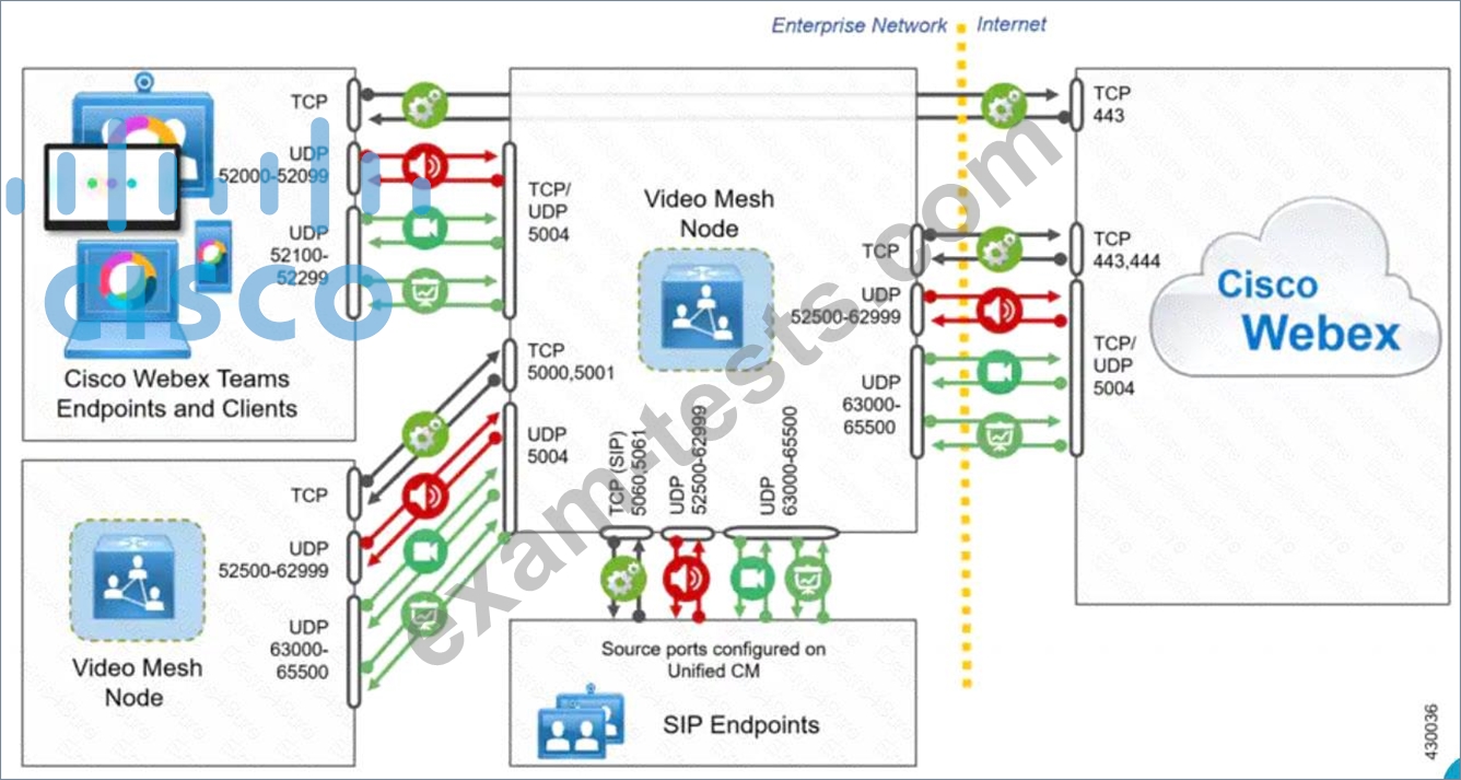 With QoS enabled, which two statements about the Cisco Webex Video Mesh Node signaling and media traffic are true? (Choose two.)
