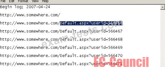 From the log, the investigator can see where the person in question went on the Internet. From the log, it appears that the user was manually typing in different user ID numbers. What technique this user was trying?