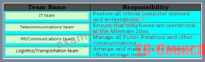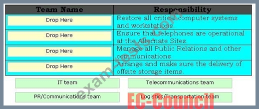 Drag and drop the appropriate team names in front of their respective responsibilities.