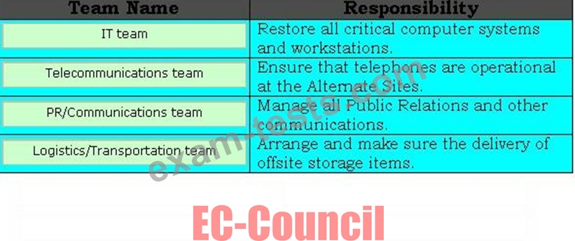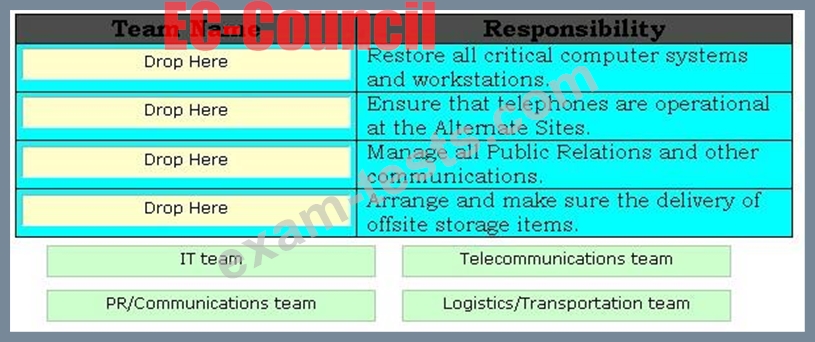 Drag and drop the appropriate team names in front of their respective responsibilities.