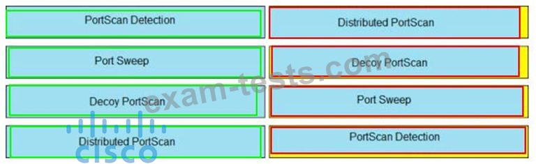 Drag and drop the Firepower Next Generation Intrusion Prevention System detectors from the left onto the correct definitions on the right.