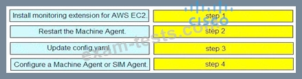 Drag and drop the steps from the left into the correct order on the right to enable AppDynamics to monitor an EC2 instance in Amazon Web Services.