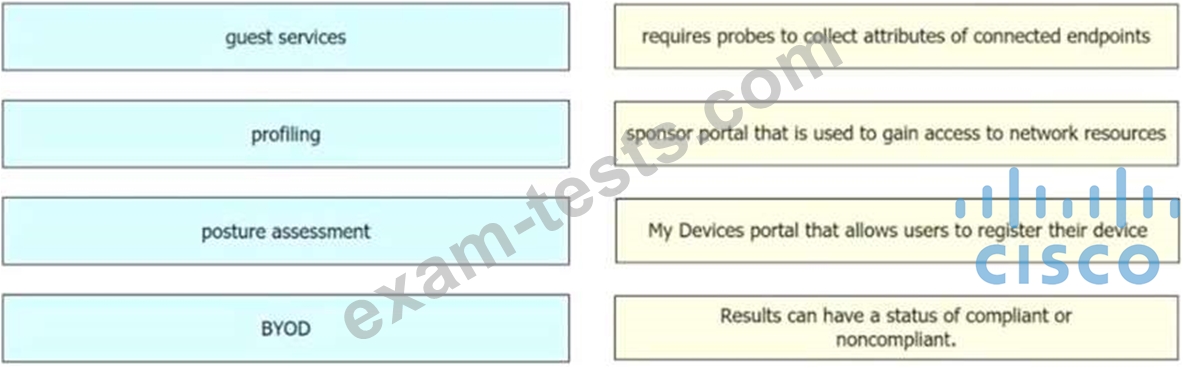 Drag and drop the concepts from the left onto the correct descriptions on the right