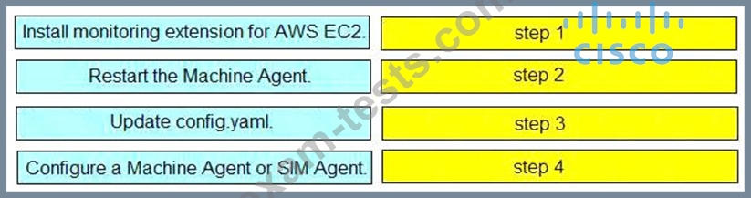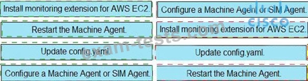 Drag and drop the steps from the left into the correct order on the right to enable AppDynamics to monitor an EC2 instance in Amazon Web Services.