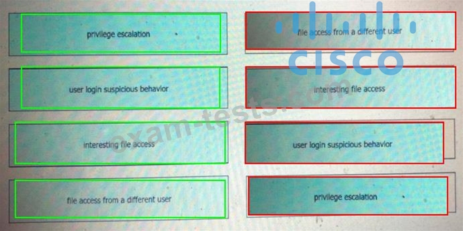 Drag and drop the suspicious patterns for the Cisco Tetration platform from the left onto the correct definitions on the right.