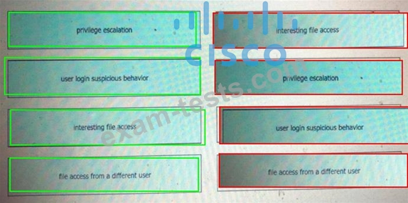 Drag and drop the suspicious patterns for the Cisco Tetration platform from the left onto the correct definitions on the right.