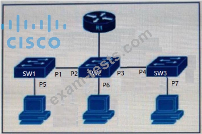 The DHCP snooping database resides on router R1, and dynamic ARP inspection is configured only on switch SW2. Which ports must be configured as untrusted so that dynamic ARP inspection operates normally?