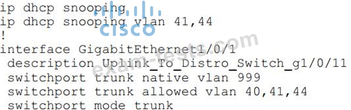 An organization is using DHCP Snooping within their network. A user on VLAN 41 on a new switch is complaining that an IP address is not being obtained. Which command should be configured on the switch interface in order to provide the user with network connectivity?