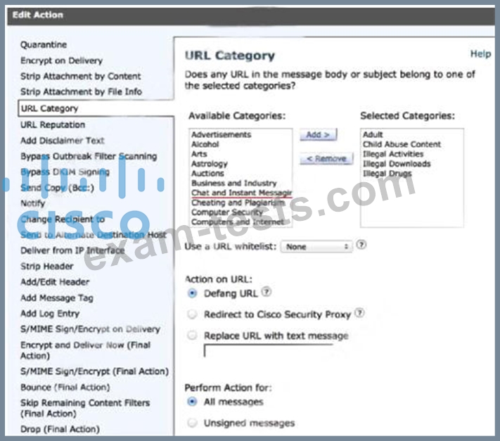 We choose "Chat and Instant Messaging" category in "URL Category":