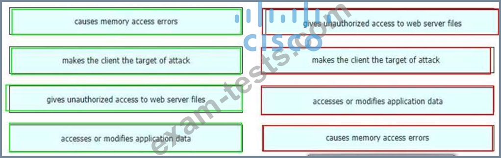 Drag and drop the exploits from the left onto the type of security vulnerability on the right.
