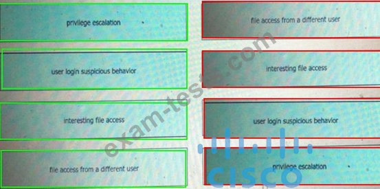 Drag and drop the suspicious patterns for the Cisco Tetration platform from the left onto the correct definitions on the right.