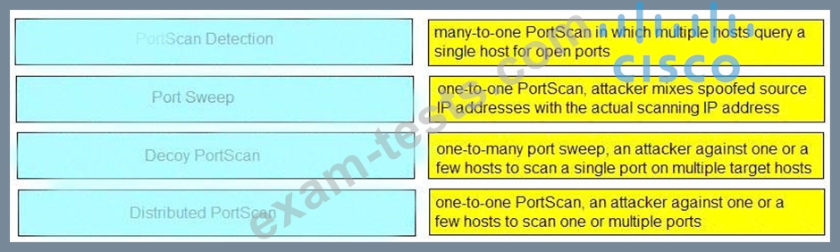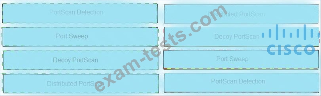 Drag and drop the Firepower Next Generation Intrustion Prevention System detectors from the left onto the correct definitions on the right.