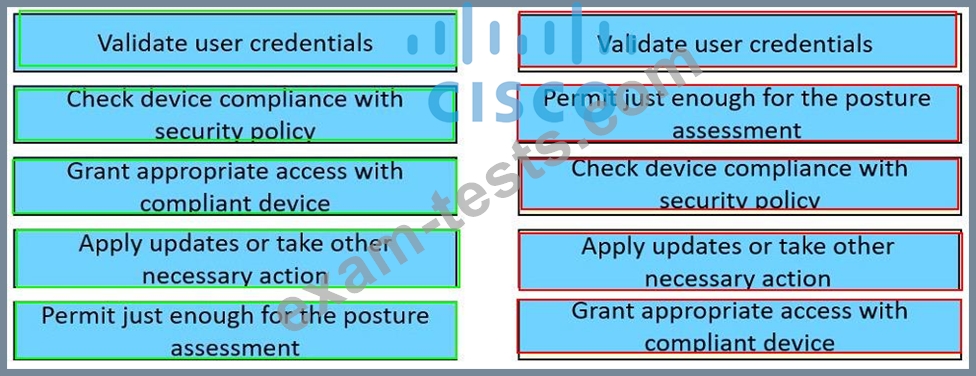 Drag and drop the posture assessment flow actions from the left into a sequence on the right.